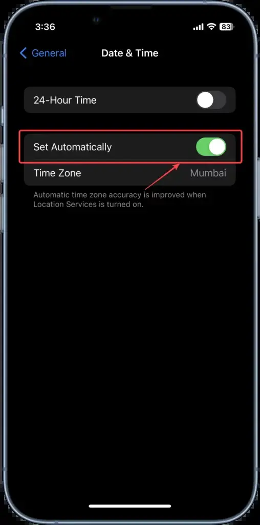 Η ημερομηνία και η ώρα είναι το πιο αναπόσπαστο μέρος του iMessage. Εάν πρέπει να ρυθμίσετε σωστά τις ρυθμίσεις ημερομηνίας και ώρας, τότε το iMessages θα εμφανίσει ένα σφάλμα ανεπιτυχούς ενεργοποίησης του iMessage. Για να ορίσετε σωστά τις ρυθμίσεις ημερομηνίας και ώρας, μπορείτε να ρυθμίσετε αυτές τις ρυθμίσεις για αυτόματη διαμόρφωση, ακολουθώντας τα παρακάτω βήματα: