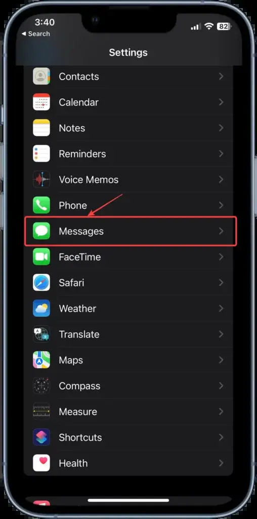 • Ανοίξτε την εφαρμογή ρυθμίσεων και επιλέξτε μηνύματα.