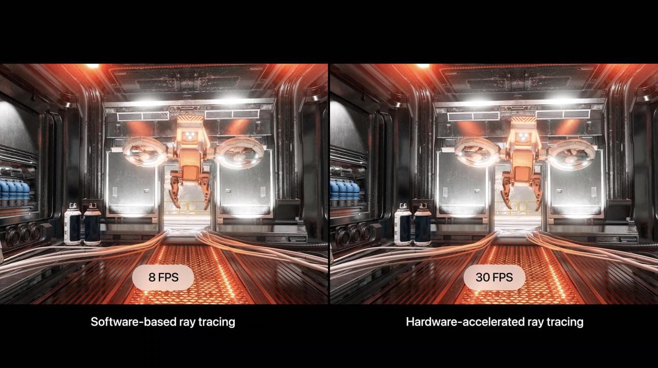 Η νέα εξαπύρηνη GPU στο A17 Pro είναι πιο γρήγορη από ποτέ, έως και 20% πιο γρήγορη. Η Apple λέει επίσης ότι η σταθερή απόδοση για παιχνίδια είναι επίσης σημαντικά βελτιωμένη. Το τσιπ A17 Pro επιτρέπει επίσης την επιτάχυνση του υλικού raytracing για εξαιρετικά ακριβή απόδοση φωτισμού στο iPhone 15 Pro. Ως αποτέλεσμα, το iPhone 15 Pro είναι το πρώτο smartphone που έχει δυνατότητα παρακολούθησης ακτίνων σε πραγ