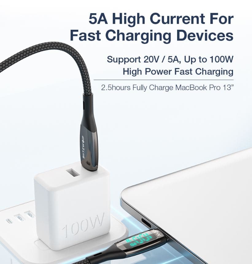 BlitzWolf BW-TC23: Type C to Type C καλώδια 100W με ένδειξη V/A και κόστος απο 5.5€ !