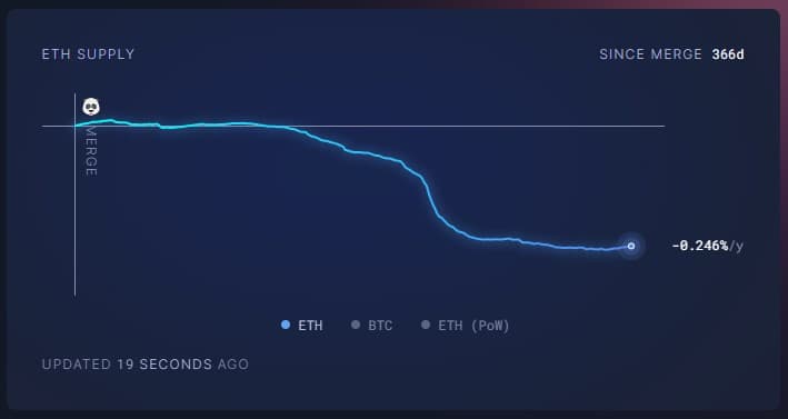 Σύμφωνα τα δεδομένα που αντλούμε από το https://ultrasound.money, από την αρχή του Merge μέχρι σήμερα, έχουν διαγραφεί σχεδόν