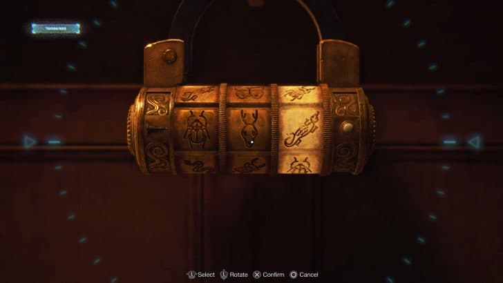 για να ελέγξετε τα ίχνη στο πάτωμα και να εντοπίσετε ενδείξεις που θα σας βοηθήσουν να ανοίξετε την κλειδαριά. Ή, εναλλακτικά, απλώς δείτε την παρακάτω εικόνα – ο συνδυασμός είναι σκαθάρι, ελάφι, σαύρα/κροκόδειλος.