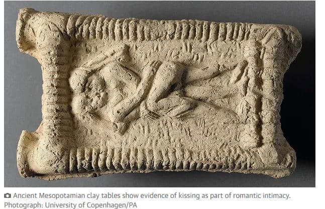 Οι επιστήμονες ανέδειξαν στοιχεία που υποδηλώνουν ότι το φιλί εφαρμόστηκε σε ορισμένες από τις πρώτες κοινωνίες της Μεσοποταμίας και καταγράφηκε σε αρχαία κείμενα από το 2.500 π.Χ., τα οποία έχουν αγνοηθεί σε μεγάλο βαθμό.