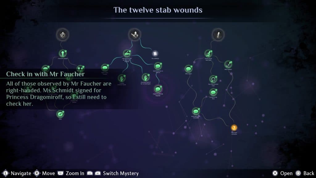 Στα του gameplay τα πράγματα κινούνται στα κλασσικά επίπεδα. Μου άρεσε περισσότερο η εκτέλεση του Mind Palace, του χάρτη σκέψεων δηλαδή του Ηρακλή Πουαρό, καθώς το βρήκα εύκολο έτσι όπως δομείται να κρατά ενημερωμένο τον παίκτη με τα στοιχεία που προκύπτουν, τι έχει ανακαλύψει ήδη και πιο το επόμενο βήμα, ώστε να μην χάνεται. Θα κληθείτε να βάλετε σε αλληλουχία τα γεγονότα, να συσχετίσετε στοιχεία μεταξύ τους, να λύσετε διάφορους γρίφους και να έρθετε αντιμέτωποι με τα ψέματα των μαρτύρων. Την όλη εκτέλεση της ντεντέκτιβ λογικής την βρήκα πολύ καλή, προσβάσιμη στον παίκτη αλλά ταυτόχρονα απαιτεί και σκέψη. Αρκετοί γρίφοι μάλιστα (κυρίως στο 2ο μισό) απαιτούν παρατήρηση και ικανότητα από τον παίκτη να συνδέσει αυτά που βλέπει ώστε να προβεί στην επίλυση, κάτι που με εξέπληξε ευχάριστα. Υπάρχει βέβαια και hint system τριών επιπέδων για όποιον θέλει απλά μια ώθηση ή ολόκληρη την επίλυση στο πιάτο. Κάτι που δε μου άρεσε είναι λίγο η πιο “χαριτωμένη” να το πω, “mobile game-y” να το πω, σχεδίαση των οθονών όταν εξετάζουμε μαρτυρίες και αλληλουχίες γεγονότων, ενώ και με κάθε σωστή παρατήρηση μας έχουμε οθόνη πανηγυρισμού από τον Πουαρό, συνοδευόμενη συνήθως με κλισέ ατάκες τύπου “my grey cells never disappoint”, τα οποία βρήκα πολύ παιδιάστικα, τη στιγμή που ο Πουαρό της Microids κρατάει μια σοβαρή στάση απέναντι στο όλο μυστήριο.