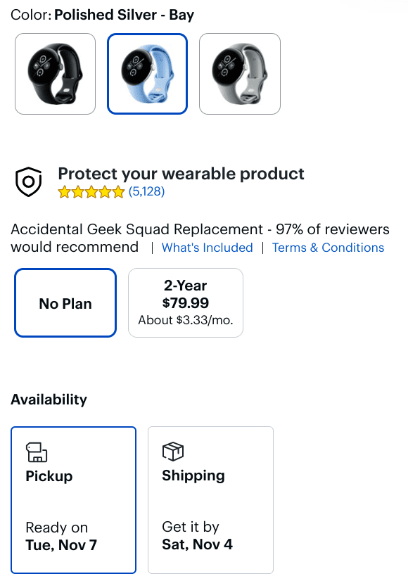 , οι υποψήφιοι αγοραστές του Pixel Watch 2 εξετάζουν σε μεγάλο βαθμό τις ημερομηνίες αποστολής από τα μέσα έως τα τέλη Νοεμβρίου για όλες τις παραλλαγές Bluetooth του smartwatch, ενώ τα μοντέλα LTE θα αποσταλούν εντός μιας εβδομάδας. Το ασημί/μπλε Pixel Watch 2 σε Bluetooth δεν είναι καν διαθέσιμο για αγορά αυτήν τη στιγμή, αντίθετα έχει καθυστερήσει επ’ αόριστον και οι αγοραστές αναγκάζονται να μπουν σε λίστα αναμονής.