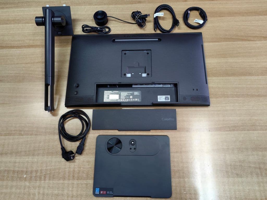 Εκτός αυτού, έχει λάβει πιστοποίηση από τους οργανισμούς Fogra και Idealliance, που σημαίνει «what you see is what you print», δηλαδή τα χρώματα που βλέπετε στην οθόνη είναι ακριβώς αυτά που θα εμφανίζονται και στις εκτυπώσεις σας (περιοδικά, αφίσες, κ.α.). Το πιο εντυπωσιακό χαρακτηριστικό της VP2786-4K όμως είναι μία πρόσθετη συσκευή ονόματι ColorPro Wheel, που περιλαμβάνεται στη συσκευασία αγοράς, και συνδέεται στη θύρα microUSB που προαναφέραμε. Είναι ένα εξαιρετικά χρήσιμο module, που εξυπηρετεί ένα πλήθος λειτουργιών, με τρόπο ο οποίος θα κάνει τη δουλειά σας πολύ πιο εύκολη. Συγκεκριμένα μπορεί να χρησιμοποιηθεί με δύο τρόπους. Πρώτον, τοποθετείται επάνω στο γραφείο σας, ως πρόσθετο input device, με ένα οριζόντιο wheel και δύο πλήκτρα, ένα στο επάνω μέρος και ένα στο πλαϊνό. Με αυτό τον τρόπο μπορείτε να κάνετε fine tuning, δηλαδή πολύ ακριβείς κινήσεις οι οποίες είναι δύσκολο να γίνουν με το mouse. Μπορείτε π.χ. να ρυθμίζετε την τιμή ενός χρώματος σε κάποια εικόνα, τη θέση του δείκτη σε κάποιο βίντεο, κτλ.