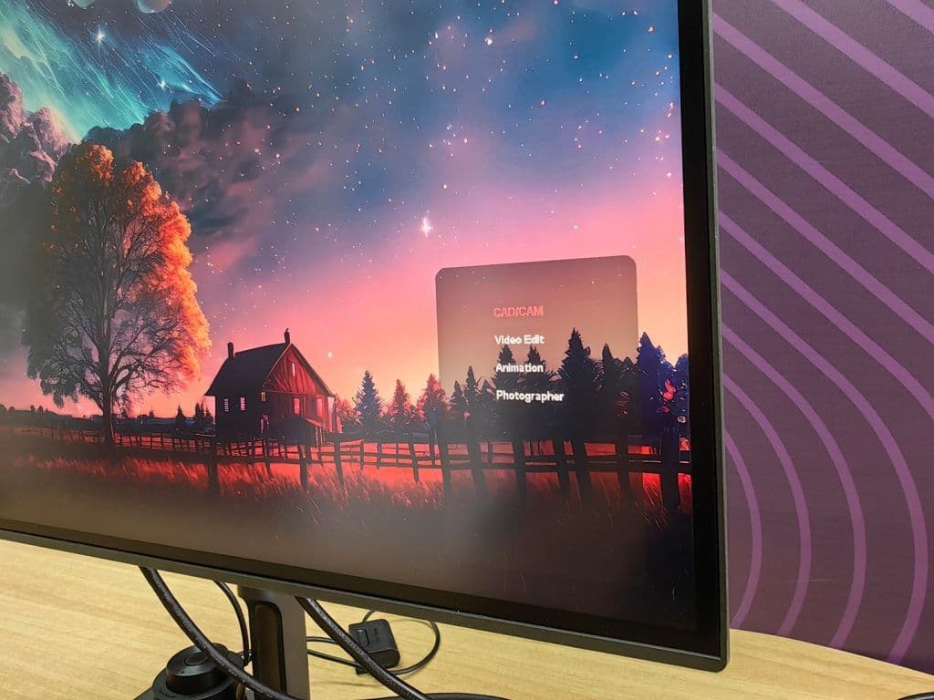 Η οθόνη διαθέτει ένα clickable joystick στο πίσω μέρος της, για τις ρυθμίσεις στο μενού, οι οποίες όμως είναι πλήρως προσβάσιμες και μέσω του wheel, ειδικά αν έχετε «γεμάτο» γραφείο που σας δυσκολεύει να φτάσετε την πλάτη της. Οι δυνατότητες του ColorPro Wheel όμως δεν σταματούν εδώ, αφού στο κάτω μέρος του, διαθέτει και έναν φακό / αισθητήρα. Έτσι, τοποθετώντας τη συσκευή είτε στο panel της οθόνης, είτε σε οποιαδήποτε άλλη επιφάνεια, μπορείτε να επιλέξετε με απόλυτη ακρίβεια το χρώμα που θέλετε, και μάλιστα να εμφανίσετε και τις pantone πληροφορίες του.