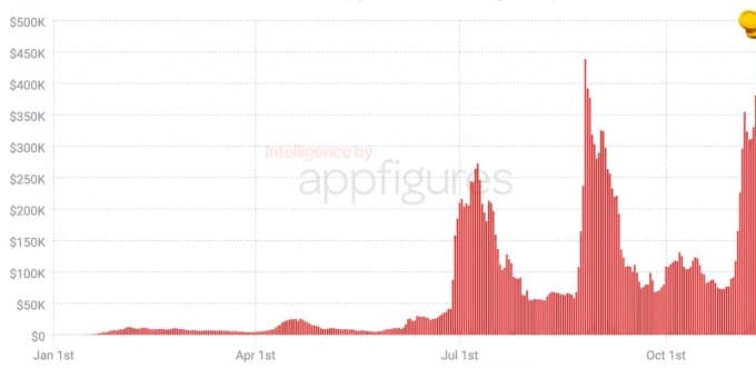 βρήκε το δρόμο της στην κορυφή του App Store, κάτι που οδήγησε στο να κερδίσει η εφαρμογή 1,9 εκατομμύρια λήψεις (μέχρι στιγμής) μόνο τον Νοέμβριο. Το περασμένο Σάββατο, η εφαρμογή σημείωσε επίσης καθημερινό ρεκόρ όσον αφορά τις λήψεις και τα έσοδα, με 326.000 νέες εγκαταστάσεις και 459.000 $ σε καθαρά έσοδα – το τελευταίο σημαίνει τα έσοδα που διατήρησε μετά την πληρωμή των τελών του καταστήματος εφαρμογών.