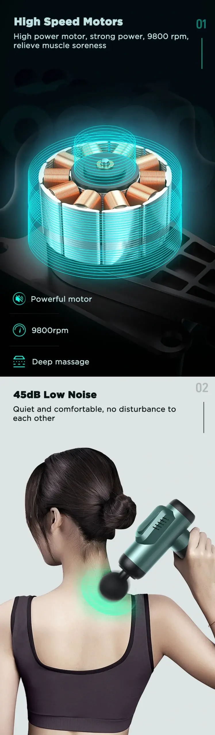 Κατά τη λειτουργία του παράγει μέχρι και 45dΒ θορύβου, οπότε και στο “τέρμα” δεν είναι πολύ ενοχλητικό, και η μπαταρία του, που φορτίζει μέσω USB-C, αντέχει ίσα με 10 ώρες μασάζ.