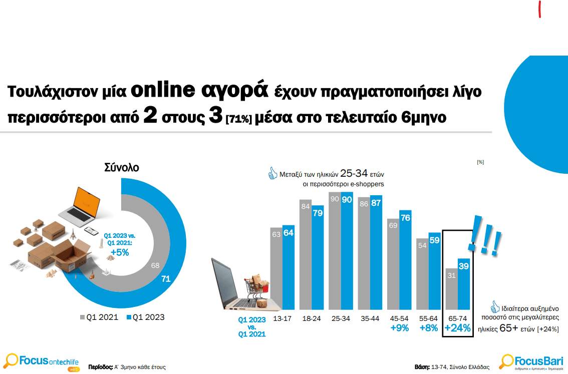 Σύμφωνα με την νέα έκδοση της Έρευνας Focus on Tech Life που «τρέχει» με πρωτοβουλία της Focus Bari από το 1995, η χρήση internet στην χώρα μας είναι πλέον καθολική, ενώ συνεχώς αυξάνεται και ο βαθμός αξιοποίησης των δυνατοτήτων που δίνει το διαδίκτυο στους πολίτες-καταναλωτές για επικοινωνία, ενημέρωση, κοινωνικοποίηση, εκπαίδευση, αγορές κλπ. Από τα πιο σημαντικά ευρήματα διαπιστώνεται ότι: