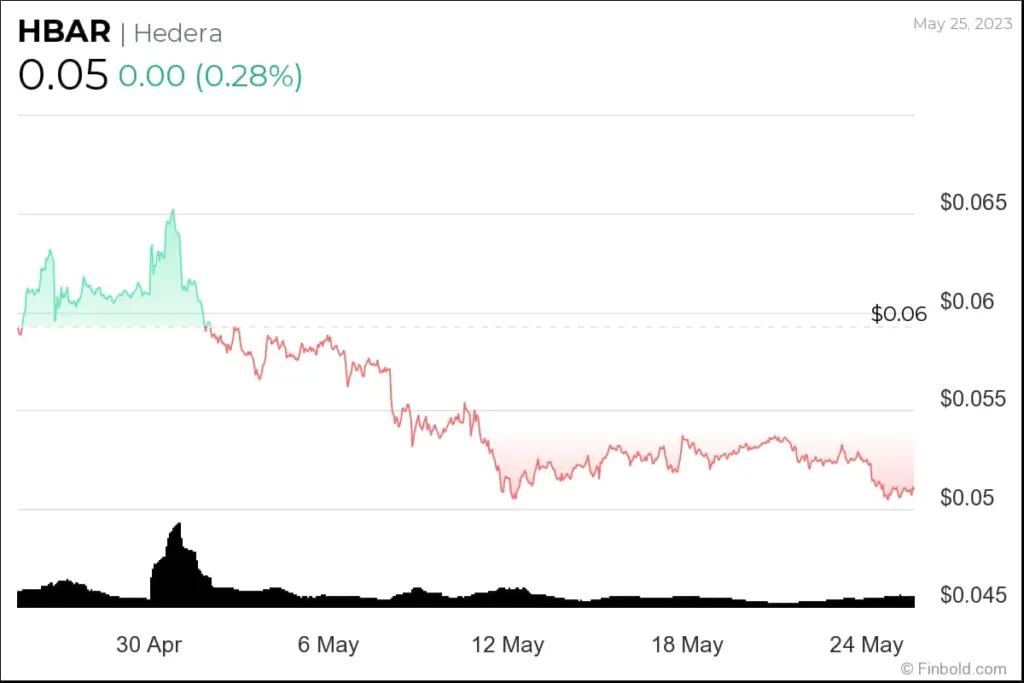 Κατά τη στιγμή της δημοσίευσης, το HBAR ήταν $0,06, σημειώνοντας άνοδο 0,28%. Τον περασμένο μήνα, το crypto token έπεσε σχεδόν 15%.