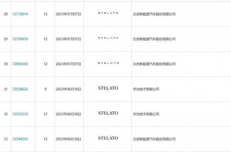 Η Εθνική Διοίκηση Πνευματικής Ιδιοκτησίας της Κίνας (CNIPA) φιλοξένησε την ανακοίνωση ότι η Huawei μεταβίβασε πολλαπλά εμπορικά σήματα «STELATO» στην BAIC BJEV. Αν και το επίσημο κινέζικο όνομα της μάρκας δεν έχει ακόμη αποκαλυφθεί, το STELATO φαίνεται να είναι το παιχνίδι της Huawei με την ιταλική λέξη «stellato», που σημαίνει «αστέρι». Στο συνέδριο κυκλοφορίας του Luxeed S7, ο Yu Chengdong άφησε να ξεφύγει ότι το μοντέλο της κοινής προσπάθειας, με εσωτερική κωδικοποίηση X4, φέρει μια αναμενόμενη τιμή από 300.000 – 400.000 RMB (39.400 – 52.600 €). Ακολουθώντας το επιχειρηματικό μοντέλο της AITO, η BAIC BJEV αναλαμβάνει τα ηνία της παροχής της πλατφόρμας του οχήματος και της επίβλεψης της παρ