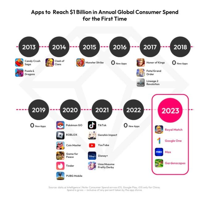 Η οικονομία εφαρμογών ανέκαμψε το 2023, με καταναλωτικές δαπάνες 171 δισεκατομμυρίων δολαρίων, αλλά οι λήψεις ήταν σταθερές