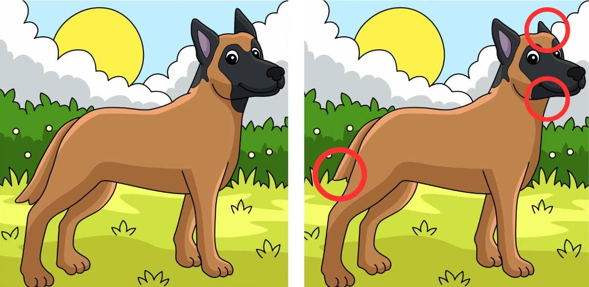 Κοιτάξτε πολύ προσεκτικά τις δύο εικόνες και θα παρατηρήσετε τις διαφορές μεταξύ τους. Ο σκύλος στέκεται χαρούμενος στο πάρκο. Παρά το γεγονός ότι οι δύο