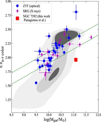 Στο γαλαξία NGC 7392, 137 εκατομμύρια έτη φωτός από εμάς, μία μαύρη τρύπα κατάπιε ένα άστρο. Το γεγονός είναι ιδιαίτερα σημαντικό επειδή ήταν η κοντινότερη ματιά μας σε αυτό το φαινόμενο και οι αστρονόμοι κατάφεραν να το καταγράψουν. Μάλιστα, αντί να καταγραφεί στο ορατό φάσμα ή σε ακτίνες Χ, το γεγονός το οποίο ονομάστηκε