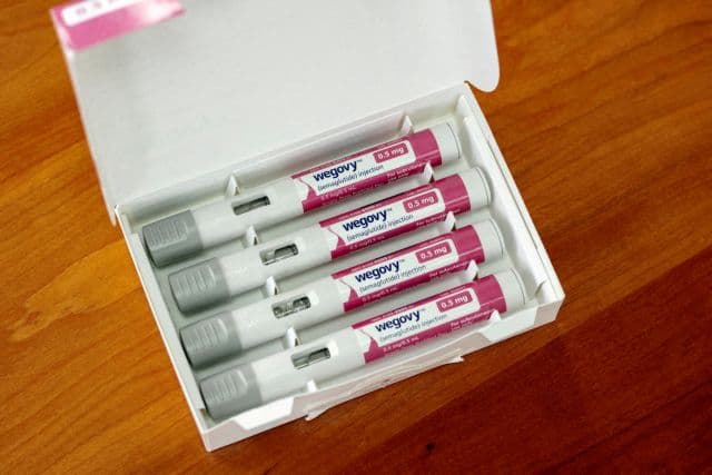 FILE PHOTO: A selection of injector pens for the Wegovy weight loss drug are shown in this photo illustration in Chicago, Illinois, U.S., March 31, 2023. REUTERS/Jim Vondruska/Illustration//File Photo
