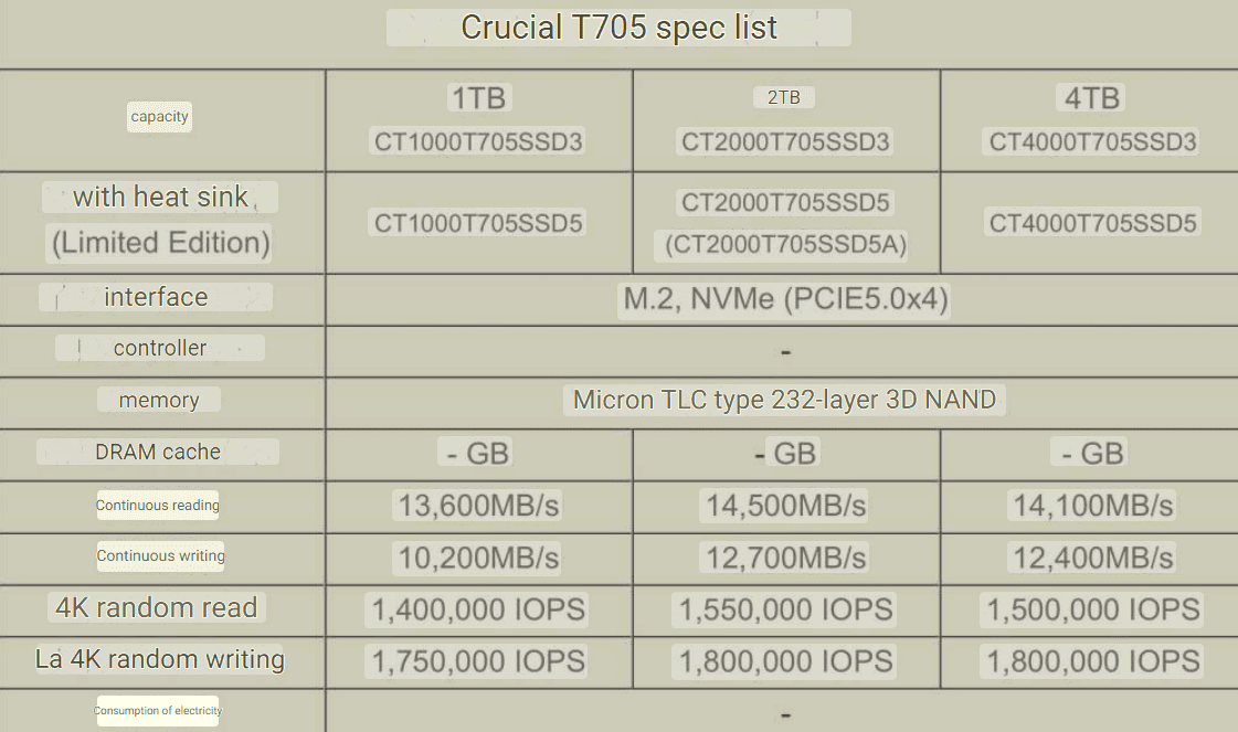 Προχωρώντας στο ενδιαφέρον κομμάτι, οι δίσκοι SSD Crucial T705 Gen5 αναμένεται να διαθέτουν ταχύτητες ανάγνωσης έως και 14.500 MB/s, γεγονός που το τοποθετεί στην