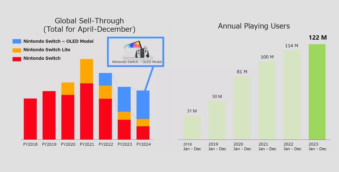 η Nintendo ανέφερε ότι ο αριθμός των ετήσιων χρηστών που παίζουν Switch αυξήθηκε στο ιστορικό υψηλό των 122 εκατομμυρίων πέρυσι.