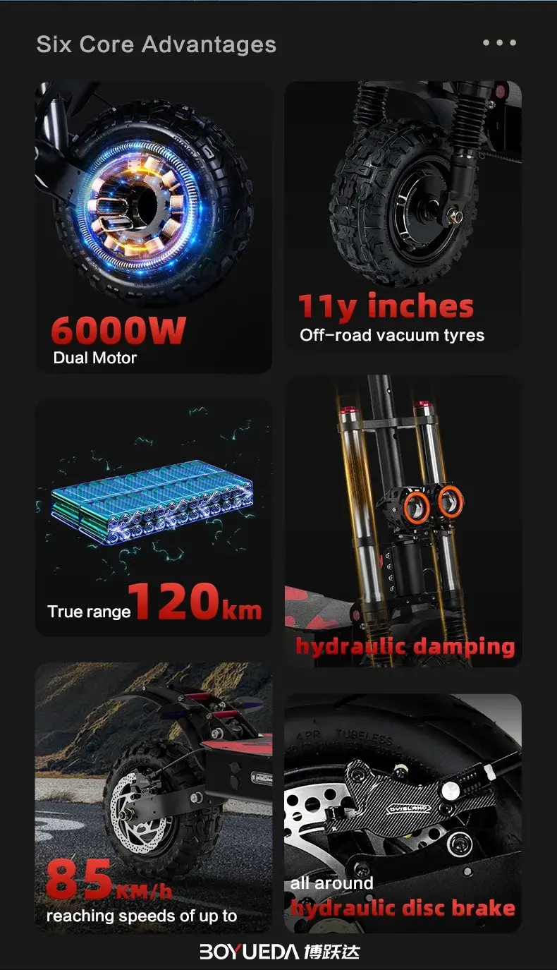 Ηλεκτρικό πατίνι με κάθισμα, δύο μοτέρ και ελαστικά 11″ με 6000W ισχύ και αυτονομία 100 χιλιομέτρων – BOYUEDA S3-11