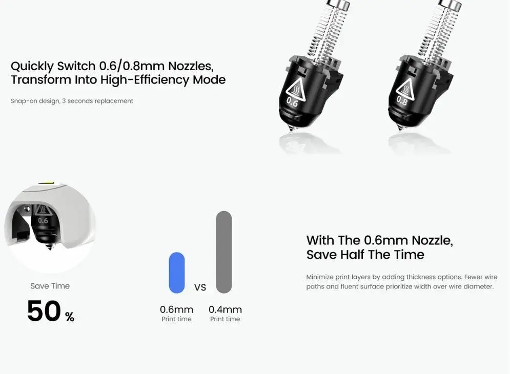 με δυνατότητα αλλαγής σε nozzle με 0.25mm, 0.6mm και 0.8mm ανάλογα τις ανάγκες σας, και μπορεί να εκτυπώσει σε