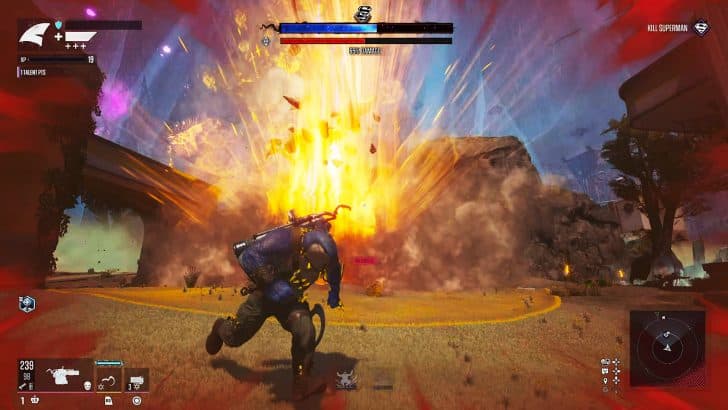Όταν ο Σούπερμαν αρχίσει να αντλεί ενέργεια από τον ήλιο για την επίθεση AoE, απομακρυνθείτε από την εμβέλειά του και μόλις ενεργοποιηθεί, τρέξτε πίσω προς τον Σούπερμαν όσο πιο γρήγορα μπορείτε – ο Σούπες μένει άναυδος για λίγα δευτερόλεπτα και ορθάνοιχτος σε έναν πάγκο αφού αυτός κάνει την επίθεση AoE. Κάνει αυτήν την επίθεση AoE αρκετά συχνά, ώστε να μπορείτε να διατηρήσετε τη γραμμή ευπάθειας του σχεδόν στο μέγιστο εκμεταλλευόμενοι αυτό το άνοιγμα. Συνεχίστε τον Σούπερμαν και μην πνίγεστε όταν προσπαθεί να σας κατασπάσει με επιθέσεις και θα μπορέσετε να τον βγάλετε έξω.