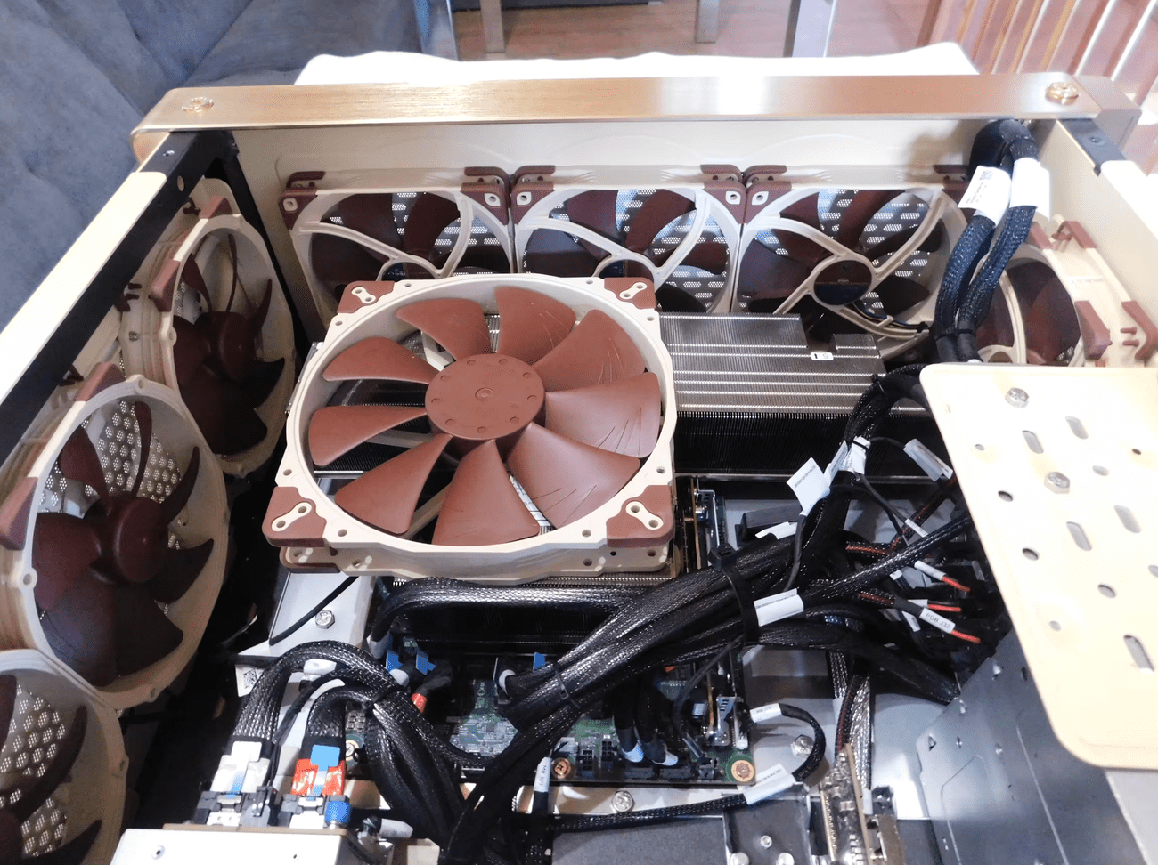 Για την ψύξη του συνόλου, υπάρχει μια ψύκτρα που είναι εξοπλισμένη με έναν μόνο ανεμιστήρα Noctua NF-A15 PWM σε διαμόρφωση από πάνω προς τα κάτω, ενώ το ίδιο το πλαίσιο είναι εξοπλισμένο με 8 ανεμιστήρες Noctua. Μπορείτε να πάρετε το περίβλημα και στα