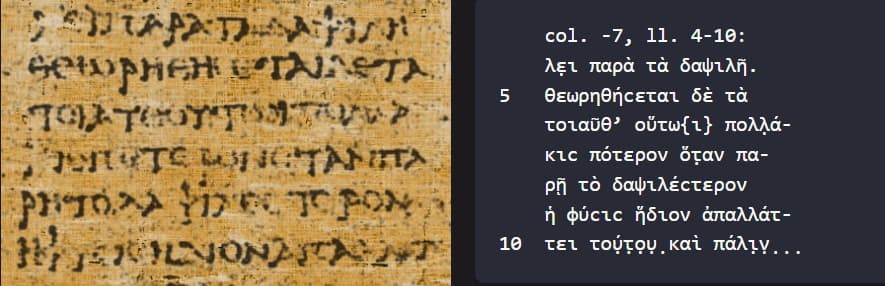 Ένα από τα αποσπάσματα που αναφέρονται στη θεματολογία του Επίκουρου (Vesuvius Challenge)