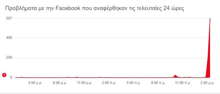 Μεγάλος αριθμός αναφορών από χρήστες εμφανίζεται και στο αντίστοιχο γράφημα για το Facebook στην Ελλάδα.