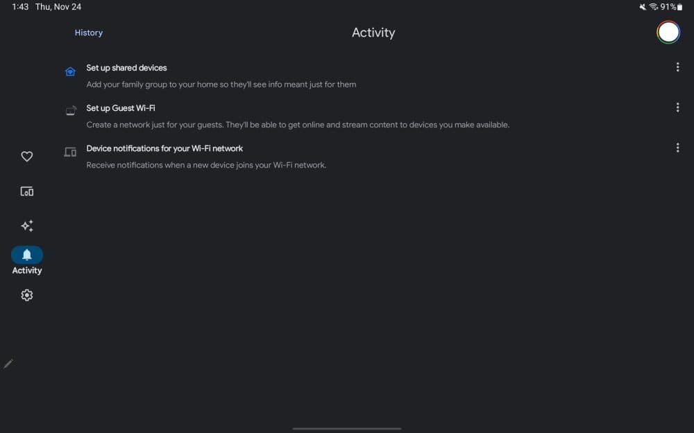 Meanwhile, Automations and Activity use a single column layout that is too stretched out, while Google looks to have not yet optimized the Settings column with a lot of left/right padding.
