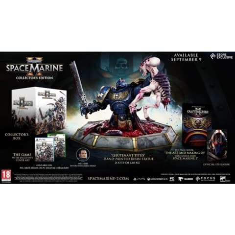 Η συλλεκτική έκδοση του Space Marine 2 είναι απολύτως γεμάτη καλούδια, αν και το τεράστιο άγαλμα του Υπολοχαγού Τίτου είναι χωρίς αμφιβολία το κύριο αξιοθέατο. Μαζί με το βασικό παιχνίδι και τα πάντα από τη χρυσή έκδοση (season pass, έγκαιρη πρόσβαση, διάφορα πακέτα DLC), θα λάβετε τα εξής:
