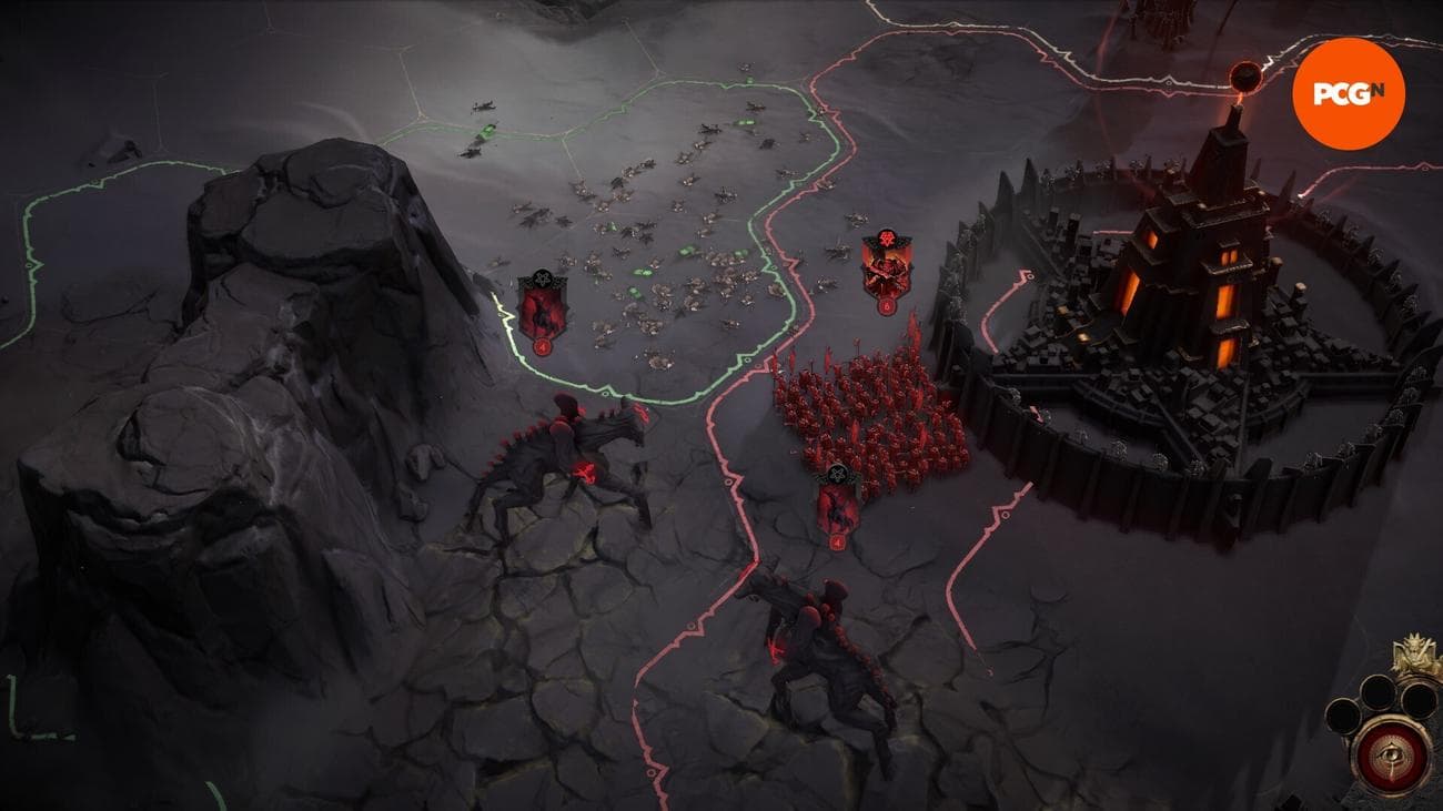 And it looks fantastic. The designs of the archfiends ooze malice, sin, and sleaze, while the maps are unlike anything you’ve seen in any recent strategy game rivals – the verdant meadows and bountiful oceans of a Civilization or Age of Empires are replaced with claustrophobic fire-and-brimstone confines of a classical