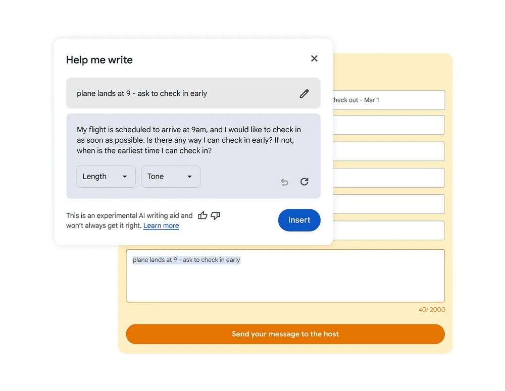 Με αυτό, η νέα λειτουργία Help Me Write θα σας παρέχει επίσης προτάσεις γραφής με βάση το περιεχόμενό σας για συγκεκριμένο περιεχόμενο σύντομης μορφής, συμπεριλαμβανομένης της σύνταξης κριτικών για οποιοδήποτε προϊόν, της ερώτησης για κρατήσεις αεροπλάνων ή της σύνταξης περιγραφών για οποιοδήποτε αντικείμενο που πωλείται στο διαδίκτυο.