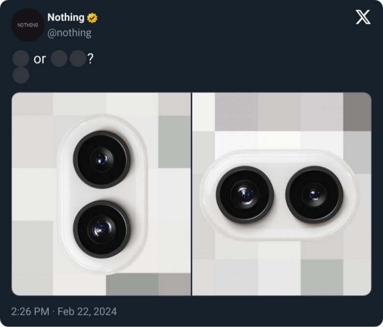 του @OnLeaks και του SmartPrix. Σε αντίθεση με την πρώτη παρτίδα, η οποία αποδείχθηκε ότι ήταν ψεύτικη, αυτή η παρτίδα ενός σκούρου γκρι τηλεφώνου (2a) ) πρέπει να είναι αληθινή. Ο σχεδιασμός της κάμερας ταιριάζει με το «Fresh Eyes» που αναφέρει η εταιρεία ενώ το teaser που συνοδεύει την ανακοίνωση του τηλεφώνου αποκαλύπτει ότι έρχεται στις 5 Μαρτίου.