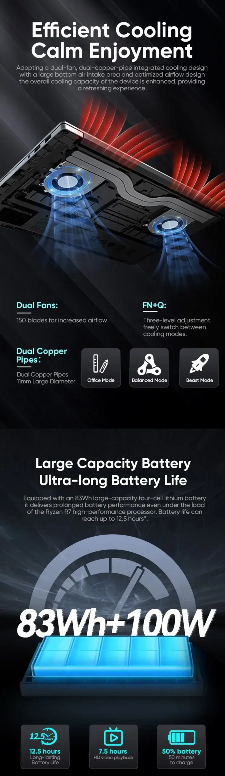 μια μια ακόμη υποδοχή για SSD στη διάθεση σας. Όλο το σύστημα στο εσωτερικό του N-ONE NBook Ultra, ψύχεται απο ένα σύστημα ενεργής ψύξης, με δύο ανεμιστήρες, και διπλά Copper pipes, για πιο γρήγορη μεταφορά της θερμότητας, μακριά απο τον επεξεργαστή και τη GPU.