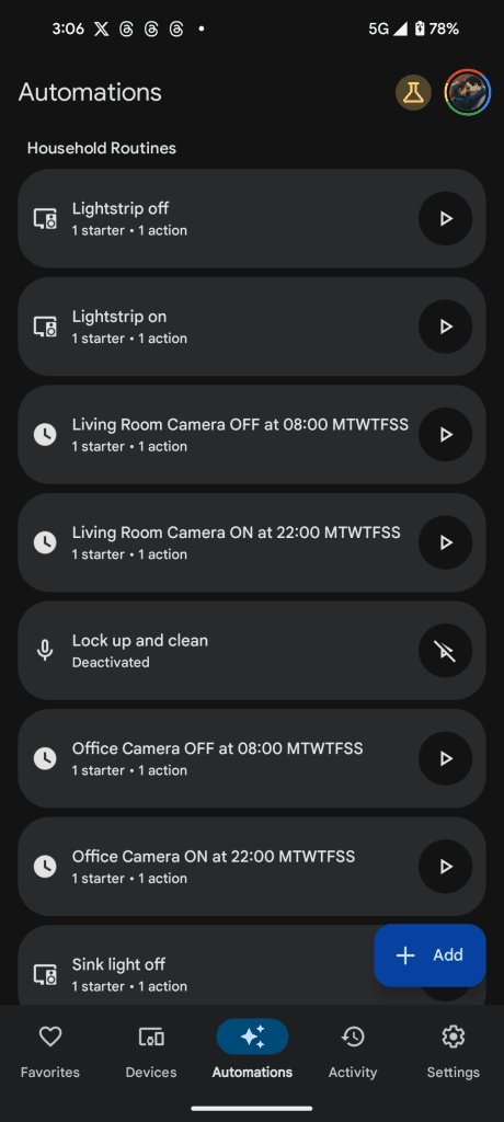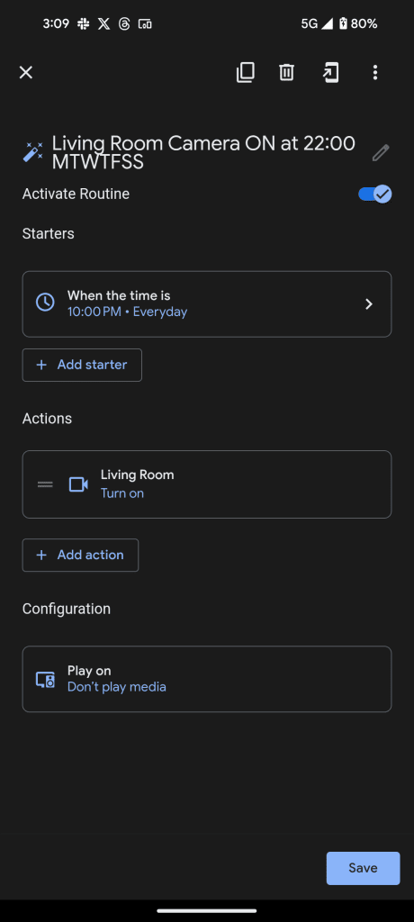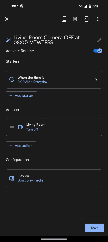 Όπως αποδεικνύεται, μέρος της διαδικασίας μεταφοράς της Google περιλαμβάνει τη δημιουργία ενός αυτοματισμού για την κάμερα, ώστε αυτό το χρονοδιάγραμμα να λειτουργεί στην εφαρμογή Home. Δεν είναι τόσο κομψό, αλλά δεν το παρατηρείτε πραγματικά καθώς η λειτουργικότητα είναι αμετάβλητη.