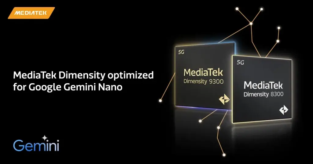 9300 και 8300. Αυτή η προσπάθεια περιλαμβάνει συνεργασία με την Google χρησιμοποιώντας το εργαλείο NeuroPilot της MediaTek και μεταφορά Gemini Nano στην MediaTek APU για βελτίωση της απόδοσης.