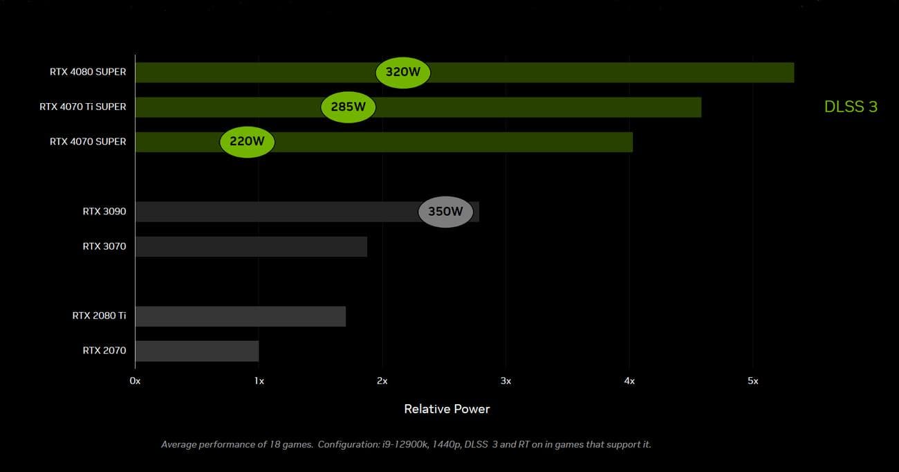 Στις αρχές Ιανουαρίου στην έκθεση CES, η Nvidia ανακοίνωσε νέες εκδόσεις της σειράς RTX 40 με την ονομασία Super. Συγκεκριμένα οι νεές GPUs είναι οι RTX 4070 Super, 4070 Ti Super και 4080 Super. Οι νέες αυτές εκδόσεις πρακτικά αντικαθιστούν εμπορικά τις “απλές” RTX 4070, 4070 Τi και 4080, είναι βασισμένες στην ίδια αρχιτεκτονική, την Ada Lovelace, και από πλευράς ισχύος φτάνουν μέχρι και τα 52 TFLOPS για επεξεργασία shaders, 121 TFLOPS για την επεξεργασία του Ray Tracing και 836 TFLOPS για επεξεργασία AI και