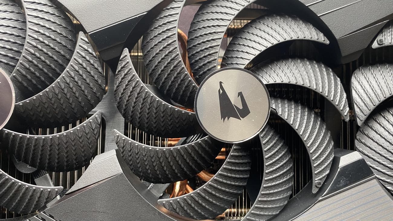 και αυξημένη πίεση αέρα και έχουν αυλάκωση στα πτερύγια τους εμπνευσμένη από το δέρμα του καρχαρία, όπως μας ενημερώνει η Gigabyte, για να ενισχύεται η ροή του αέρα. Από πλευράς φωτισμού RGB, τα πράγματα είναι πληθωρικά. Τα λογότυπα AORUS στην πίσω πλάκα και στο πλάι φωτίζονται με RGB εφέ. Επίσης οι τρεις ανεμιστήρες της κάρτας έχουν δαχτυλίδια LED κατά μήκος των πλαισίων τους, τα οποία προσφέρουν εντυπωσιακά πολύχρωμα εφέ φωτισμού.