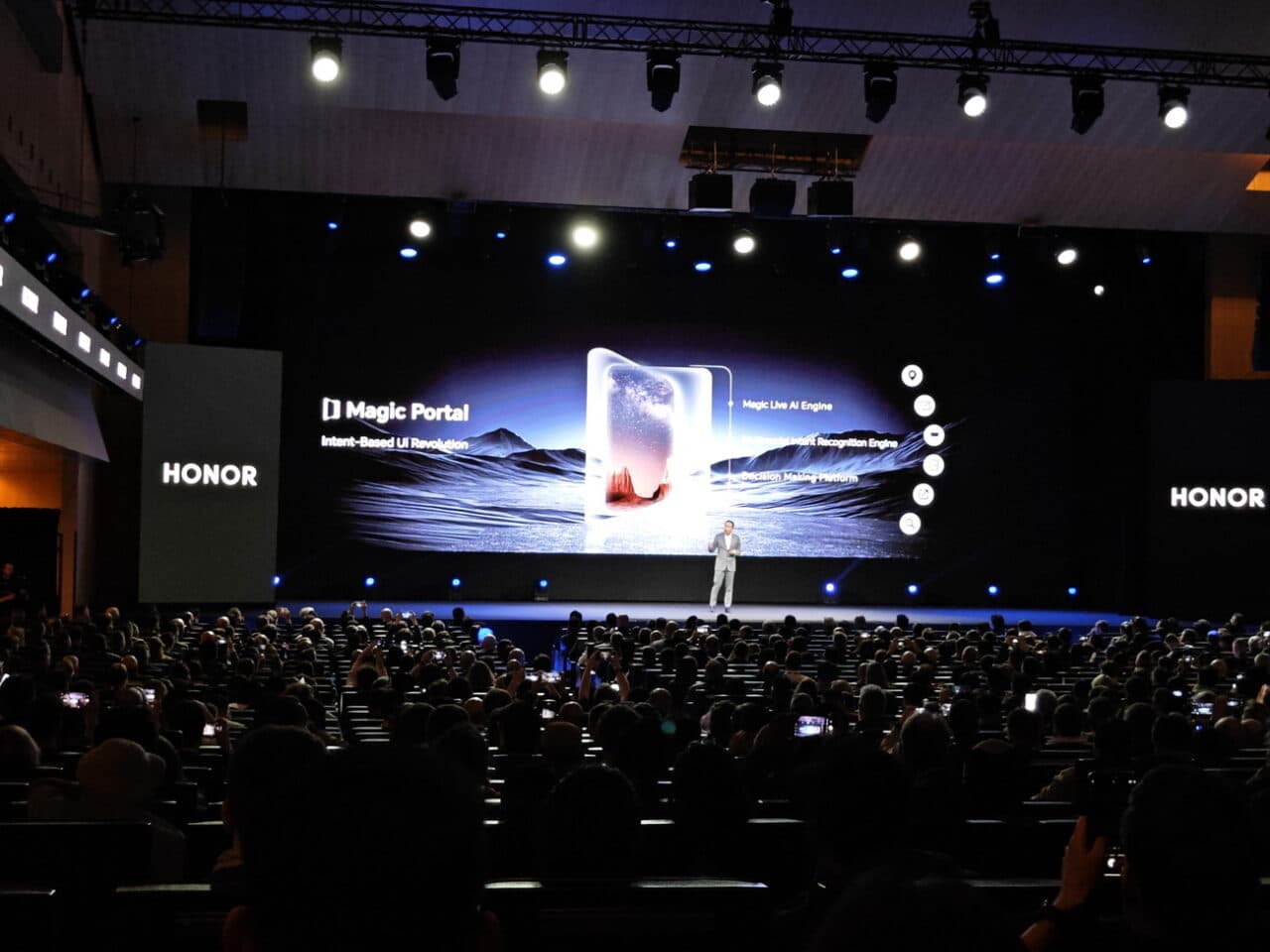 και διαθέτει το νέο “intent-based UI” της HONOR που προβλέπει την επόμενη ενέργεια του χρήστη και μειώνει τα βήματα που απαιτούνται για την επίτευξη συγκεκριμένων επιλογών. Η HONOR έδωσε ένα παράδειγμα ρίψης μιας εικόνας από το Instagram σε μια εφαρμογή αγορών για να αγοράσετε άμεσα το προϊόν που σας ενδιαφέρει. Άλλη εντυπωσιακή λειτουργία είναι η Magic Capsule η οποία σας επιτρέπει να ανοίγετε ειδοποιήσεις απλά κοιτώντας επάνω τους. Βλέπετε το κινητό αναγνωρίζει προς τα που κοιτάζουν τα μάτια σας και απλά προβλέπει την επόμενη ενέργεια σας.