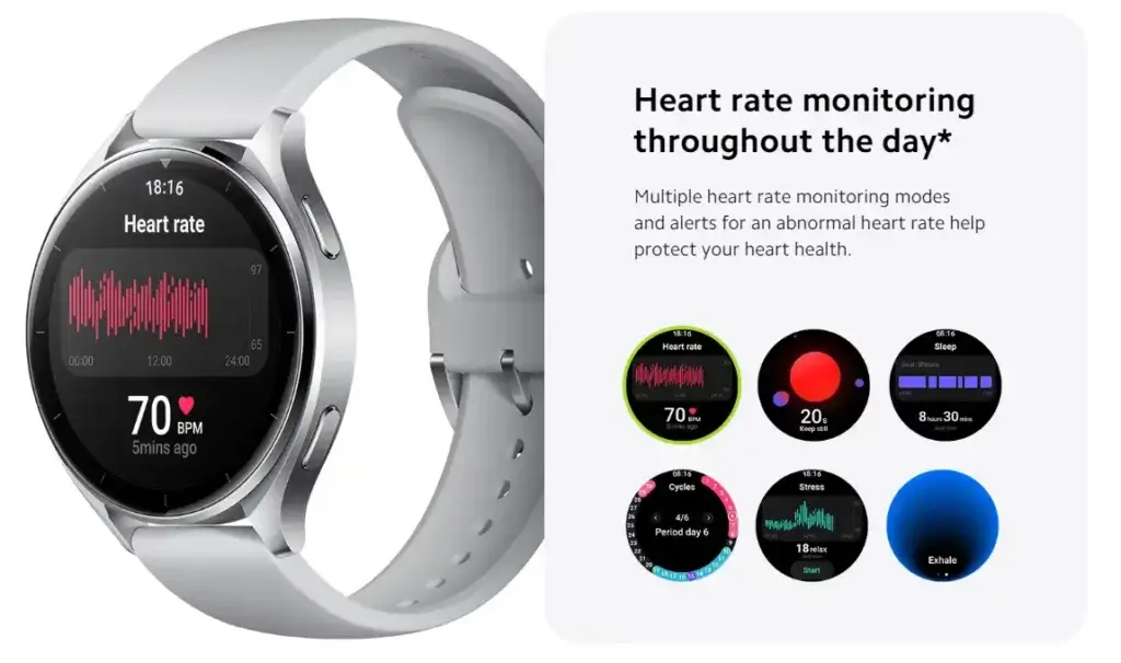Μαζί με αυτό, το έξυπνο ρολόι έρχεται επίσης με πολλά χαρακτηριστικά υγείας που αποτελούνται από ολοήμερη παρακολούθηση του καρδιακού ρυθμού μέσω πολλαπλών λειτουργιών παρακολούθησης του καρδιακού ρυθμού και ακριβή ανάλυση ύπνου χρησιμοποιώντας την εφαρμογή Mi Fitness για καλύτερα μοτίβα και συνήθειες ύπνου. Άλλα διακριτικά χαρακτηριστικά περιλαμβάνουν: το smartwatch σάς επιτρέπει την ευελιξία να εξατομικεύσετε το ρολόι σας με πάνω από 100 πρόσωπα για να διαλέξετε: υψόμετρο, ημερολόγιο, πυξίδα, φακός, έλεγχος μουσικής, συσκευή εγγραφής, χρονόμετρο και καιρός, αντίστοιχα.