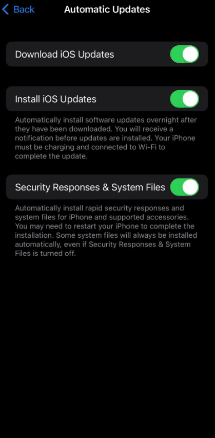 Από προεπιλογή, η συσκευή σας επιτρέπει στα RSR να κατεβαίνουν αυτόματα και όταν χρειάζεται θα γίνεται επανεκκίνηση στο iPhone. Αν δεν θέλετε ωστόσο να γίνεται αυτόματα το RSR, υπάρχει τρόπος να το απενεργοποιήσετε από τις ρυθμίσεις.
