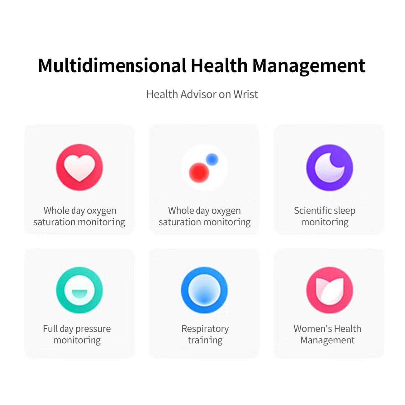 Takisto nechýba monitoring spánku, stresu, či celodenný monitoring množstva kyslíka v krvi (SpO2 funkcia). Celodenný monitoring tepu je tiež doplnený aj o sledovanie menštruačného cyklu, budík alebo počasie. Poteší aj niekoľko hier na zápästie, ako napr. 2048.