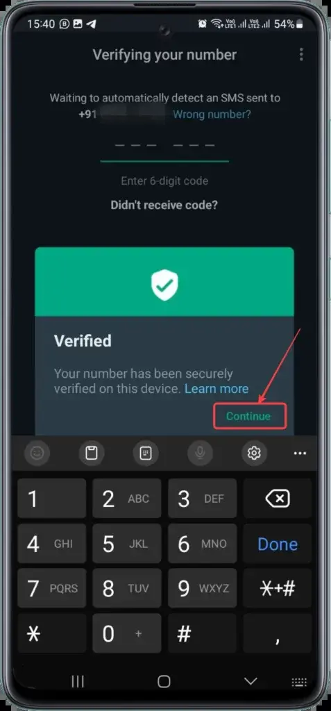 - Πατήστε Επόμενο για να λάβετε την κλήση από το WhatsApp και να επιβεβαιώσετε τον αριθμό τηλεφώνου σας.