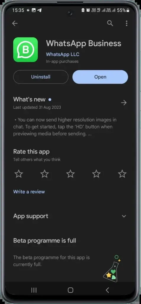 - Ενημερώστε την εφαρμογή WhatsApp Business και κατεβάστε και εγκαταστήστε την εφαρμογή WhatsApp Messenger από το Google Play Store.