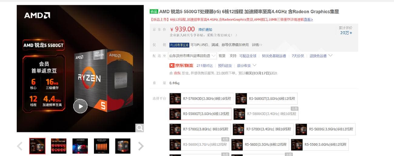 Το Ryzen 5 5500GT πωλείται στα 939 RMB