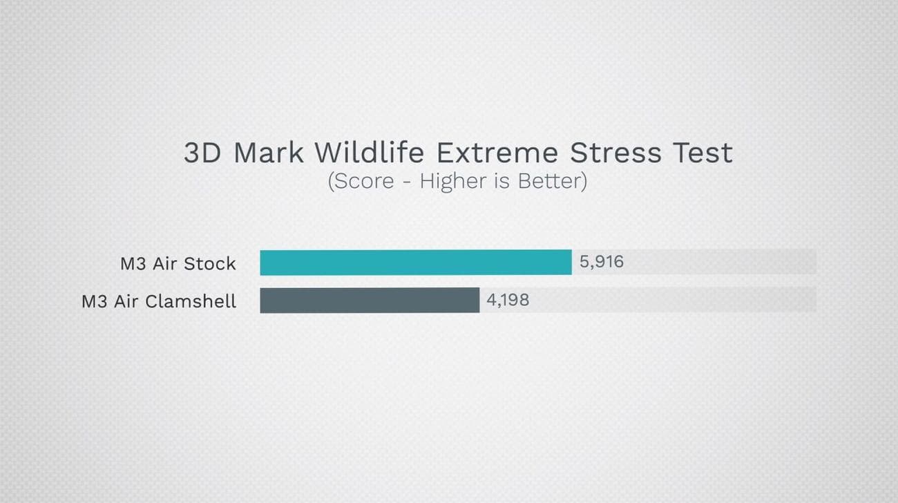 Με το καπάκι ανοιχτό, το M3 MacBook Air μπορεί να χάσει περίπου 30 τοις εκατό, καθιστώντας το πολύ καλύτερο από ό,τι όταν χρησιμοποιείται σε λειτουργία clamshell