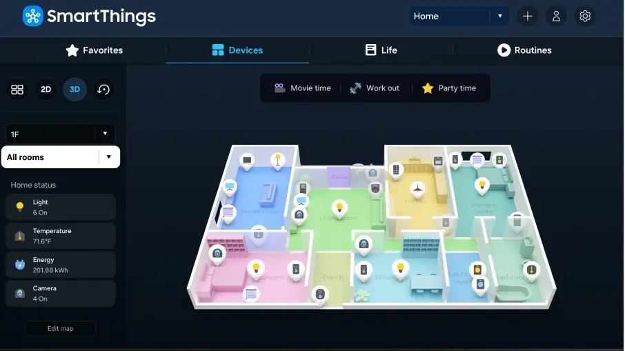 Ωστόσο, νωρίτερα, η λειτουργία προβολής χάρτη αποτελούσε ένα μοντέλο 2D και λειτουργούσε μόνο όταν παρείχε ολόκληρη την κάτοψη του σπιτιού. Αντίθετα, η Samsung δηλώνει ότι η νέα λειτουργία Map View είναι πλέον διαθέσιμη σε συσκευές Android και iOS μέσω της εφαρμογής SmartThings. Επιπλέον, στις πρώτες ημέρες αυτής της νέας λειτουργίας προβολής χάρτη, η Samsung κυκλοφόρησε τη δυνατότητα μόνο στη χώρα καταγωγής της, την Κορέα, και τις ΗΠΑ πέρυσι. Αλλά τώρα, η μάρκα έχει κάνει αυτή τη νέα δυνατότητα διαθέσιμη σε όλες τις χώρες μέσω της εφαρμογής SmartThings.