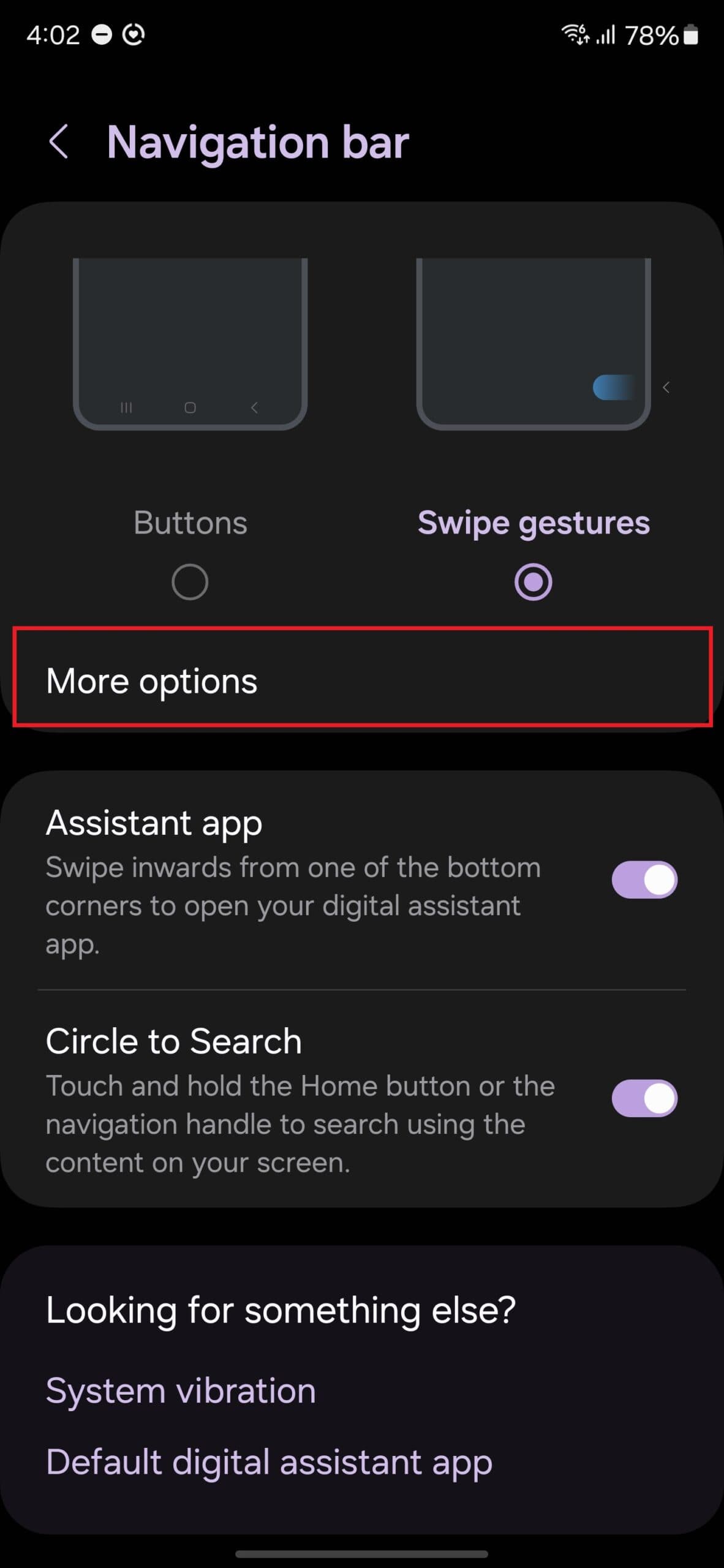 επιλογή επιστροφής στις χειρονομίες πλοήγησης της Samsung.