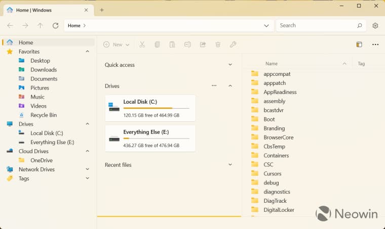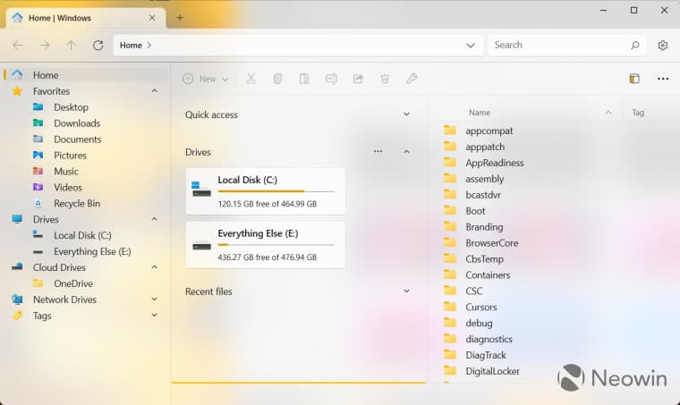 Δείτε πώς φαίνεται η εφαρμογή Files με το Mica Alt και το Acrylic και ένα παράθυρο File Explorer πίσω: