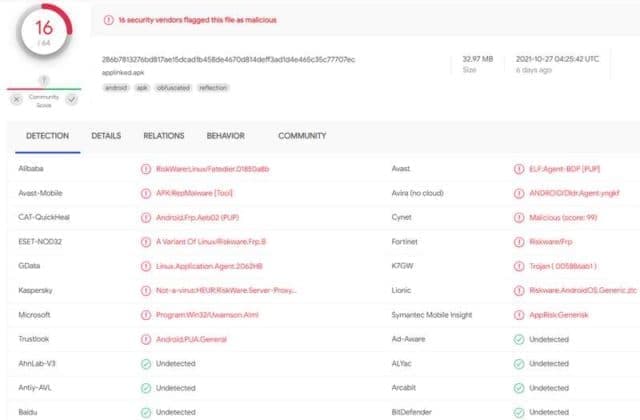 Και κάπου εδώ αρχίζει το ενδιαφέρον της υπόθεσης. Λίγο μετά τις ανακοινώσεις αυτές, τα μεγέθη των AppLinked, Filesynced και Uplinked αυξήθηκαν κατά 10 φορές. Ήταν στα 3MB περίπου και έφθασαν τα 33MB χωρίς κάποιες σημαντικές προσθήκες ή features. Φυσικά δεν δόθηκε καμιά εξήγηση, αλλά αν τρέξεις το APK στον Virus Total scanner βλέπεις ότι έχει πλήθος προειδοποιήσεων για επιβλαβές λογισμικό. Γενικώς η όλη ιστορία χτυπάει πολλά red flags και χρειάζεται προσοχή τι κατεβάζουμε και από που.